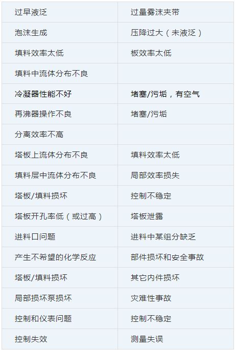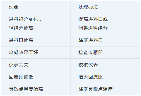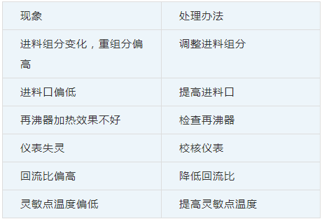 精馏技术广泛应用于各类化学品的生产中,精馏塔在化工厂也是较为常见的装置之一。在实际操作中,大家都会遇到各种各样的困难,今天给大家总结一些精馏操作中需要牢记的通用规范。 1 开车是生产中十分重要的环节,目标是缩短开车时间,节省费用,避免可能发生的事故,尽快取得合格产品。 开车的一般步骤: ①制定出合理的开车步骤,时间表和必须的预防措施;准备好必要的原材料和水电汽供应;配备好人员编制,并完成相应的培训工作等。 ②此时,塔的结构必须符合设计要求,塔中整洁,无固体杂物,无堵塞,并清除一切不应存在的物质,例如塔中含氧量和水分含量必须符合规定;机泵和仪表调试正常;安全措施已调整好。 ③对塔进行加压和减压,达到正常操作压力。 ④对塔进行加热和冷却,使其接近操作温度。 ⑤向塔中加入原料。 ⑥开启塔顶冷凝器、再沸器、各种加热器的热源以及各种冷却器的冷源。 ⑦对塔的操作条件和参数逐步调整,使塔的负荷,产品质量逐步又尽快地达到正常操作值,转入正常操作。 由于各精馏塔处理的物系性质,操作条件和整个生产装置中所起的作用等千差万别,具体的操作步骤很可能有差异。重要的是必须重视具体塔的特点,审慎地确定开车步骤。 2 停车也是生产中十分重要的环节,当装置运转一定周期后,设备和仪表将发生各种各样的问题,继续维持生产在生产能力和原材料消耗等方面已经达不到经济合理的要求,还蕴含着发生事故的潜在危险,于是需停车进行检修,要实现装置完全停车,尽快转入检修阶段,必须做好停车准备工作,制定合理的停车步骤,预防各种可能出现的问题。 停车的一般步骤: ①指定一个降负荷计划,逐步降低塔的负荷,相应地减小加热器和冷却剂用量,直至完全停止。如果塔中有直接蒸汽(如催化裂化装置主分馏塔),为避免塔板漏液,多出些合格产品,降量时可适当增加些直接蒸汽的量。 ②停止加料。 ③排放塔中存液。 ④实施塔的降压或升压,降温或升温,用惰性气清扫或冲洗等,使塔接近常温或常压,准备打开入孔通大气,为检修作好准备。具体需做哪些准备工作,必须由塔的具体情况而定,因地制宜。 塔正常操作时,气体穿过塔板上的孔道上升,液体则错流经过板面,越过溢流堰进入降液管到下一层塔板。在刚开车时,蒸汽则倾向于通过降液管和塔板上蒸汽孔道上升,液体趋向于经塔上孔道泄露,而不是横流过塔板进入降液管。只有当气液两相流率适当在降液管中建立起液封时,才逐渐变成正常流动状况。基斯特提出了建立起液封的三条准则。 ①气体通过塔板上孔道的流速需足够大,能阻止液体从孔道中泄漏,使液体横流过塔板,越过溢流堰到达降液管。 ②气体一开始流经降液管的气速需足够小,使液体越过溢流堰后能降落并通过降液管。 ③降液管必须被液体封住,即降液管中液层高度必须大于降液管的底隙。 全回流操作:全回流操作在精馏塔开车中常被采用,在塔短期停料时,往往也用全回流操作来保持塔的良好操作状况,全回流操作还是脱除塔中水分的一种方法。全回流开车一般既简单又有效,因为塔不受上游设备操作干扰,有比较充裕的时间对塔的操作进行调整,全回流下塔中容易建立起浓度分布,达到产品组成的规定值,并能节省料液用量和减少不合格产品量。全回流操作时可用料液,也可用塔合格的或不合格的产品,这样塔中建立的状况与正常操作时的较接近,一旦正式加料运转,容易调整得到合格产品。 对回流比大的高纯度塔,全回流开车有很大吸引力,文献中建议乙烯精馏塔和丙烯精馏塔采取此开车办法,因为这类塔从开车到操作稳定需较长时间,全回流时塔中状况与操作状况比较接近。对于回流比小或很易开车的塔,则往往无必要采取全回流开车办法。 全回流操作开车办法对于下面两种状况不大合适,或需采取一些措施: ①物料在较长时期的全回流操作中,特别是在塔釜较高温度区内可能发生不希望的反应(除非能选出合适的物料在全回流操作中不发生上述反应,否则应避免在这种场合应用全回流操作)。 ②物料中含有微量危险物质,例如丁二烯精馏塔中的微量乙烯基乙炔,丙烯精馏塔中的微量丙二烯和甲基乙炔。他们在正常操作中不会引出麻烦,但在长期全回流操作中又遇到塔顶馏出物管线的阀门渗漏时,此时实际上相当于一个间歇精馏,这些有害物质随时间的延长在塔中逐渐达到浓集,从而导致爆炸或其他一些事故。丁二烯精馏塔在全回流操作中,由于乙烯基乙炔浓集发生爆炸的事故已有报道。选用物料中不含这些微量物质,例如通过加氢操作清除丙烯-丙烷物料中的甲基乙炔和丙二炔,才能采用全回流操作的开车办法,否则应避免采用。 3 ①处理能力受限制 ②塔顶产品不合格 ③塔釜产品不合格 4 精馏塔安装完毕后,首先要进行强度试压,然后是吹洗塔及管线,气密试验,贯通流程,上述工作结束后方可验收交付生产使用。应该指出,强度试压和气密性试验的顺序不能颠倒,否则将隐藏着不安全的因素。 5 设备安装完毕后,首先要进行强度试压,一般用水作为试压的介质。试验压力应设为设备的设计图纸所规定的压力。如果图纸上没有具体的要求,一般情况下,可按如下规程进行:对工作压力在5公斤/厘米2以下的设备,试验压力为工作压力的1.5倍(铸铁设备除外);工作压力在5公斤/厘米2以上者,试验压力为